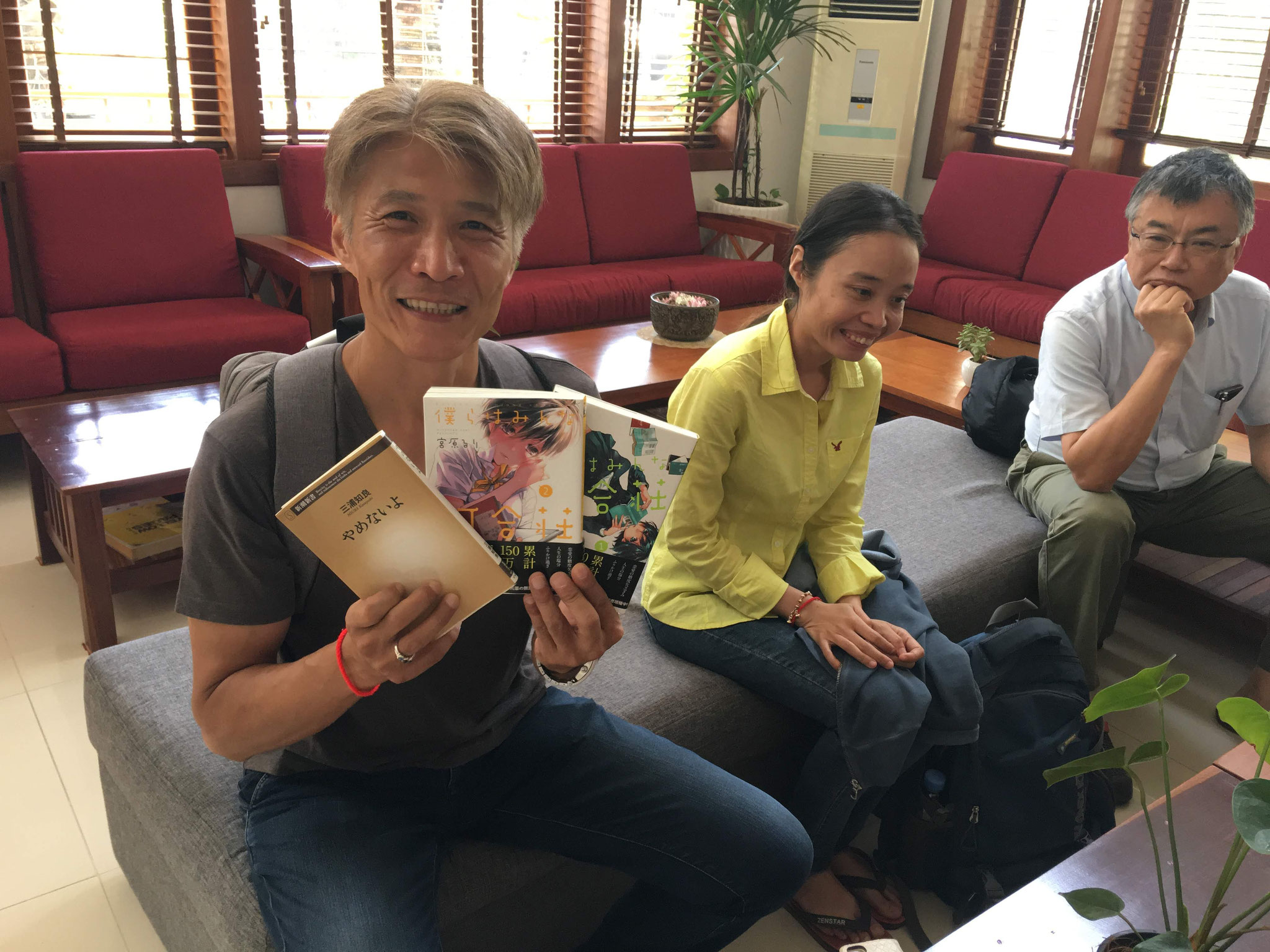 8月21日(火) たくみ日本語学校へ横木由美子さんらからの図書寄贈